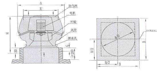 產(chǎn)品名稱(chēng): DWT-Ⅲ型低噪聲離心軸向式屋頂排風(fēng)機(jī)