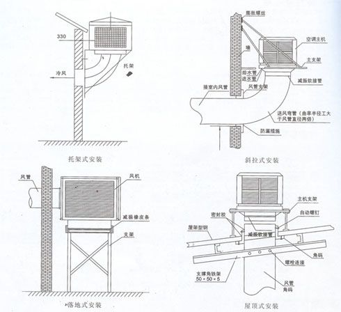 計(jì)算方法:場(chǎng)地體積×換氣次數(shù)÷機(jī)組風(fēng)量=使用機(jī)組數(shù)量 五、使用說(shuō)明 1、本機(jī)適用于40-200m2房間降溫。風(fēng)機(jī)和水泵的電路宜集中控制,控制開(kāi)關(guān)應(yīng)裝在室內(nèi)。冷風(fēng)機(jī)使用前,應(yīng)確保濕簾和水池中無(wú)雜物,每年清醒1-2次;冬季不用時(shí),將池內(nèi)水放凈,用塑料布把箱體包扎好,以免雜物進(jìn)入機(jī)內(nèi)。 2、加入池中水應(yīng)為清潔水,以保持管路暢通和濕簾的高效率。如發(fā)現(xiàn)濕簾供水不足和不均時(shí),要檢查池中是否缺水(池中浮球閥能自動(dòng)補(bǔ)水和斷水),水泵是否運(yùn)轉(zhuǎn)以及供水管路和水泵入口,尤其是噴水管璐上的小孔有否堵塞,檢查噴水管路是否位于濕簾的正中。 六、安裝示意及說(shuō)明 壁式安裝技術(shù)要求: 1、風(fēng)機(jī)主機(jī)支架焊接和牢固; 2、風(fēng)機(jī)主機(jī)安裝必須水平; 3、所有外墻風(fēng)管都要作好防水處理; 4、40×40×4角鐵架與墻或窗采用螺栓連接,風(fēng)管與角鐵架間 填橡膠圈。且所有墻上縫隙均用玻璃膠或水泥砂漿密封。 5、減振軟接管必須保證長(zhǎng)度為200-300mm。 屋頂式安裝技術(shù)要求: 1、屋架要有足夠的強(qiáng)度承受風(fēng)機(jī)和安裝維修人緣的重量; 2、屋頂開(kāi)口尺寸與風(fēng)管尺寸的單邊間隙應(yīng)不大于10mm(如圖) 3、風(fēng)機(jī)主機(jī)安裝必須水平; 4、所有外墻風(fēng)管都要作好防水防漏處理; 5、減振軟接管必須保證長(zhǎng)度為200-300mm。 七、濕簾冷風(fēng)機(jī)原理示意圖 ![]() 新時(shí)代的選擇:濕簾+風(fēng)機(jī)縱向通風(fēng)降溫系統(tǒng)。是當(dāng)今世界最先進(jìn)、最經(jīng)濟(jì)。最環(huán)保的降溫系統(tǒng)。工作原理是:在波紋狀的濕膜表面有層薄薄的水膜,當(dāng)室外干熱新鮮空氣被對(duì)面風(fēng)機(jī)抽吸穿過(guò)濕膜時(shí),空氣中的熱量被濕膜上的水吸收并 水蒸發(fā)進(jìn)入室內(nèi),形成涼爽濕潤(rùn)的空氣,使人產(chǎn)生清新的感覺(jué)。在炎熱的夏天,該系統(tǒng)可將室內(nèi)溫度降低5-10度,而耗 電量只是傳統(tǒng)的空調(diào)的十分之一,完全符合高效節(jié)能的經(jīng)濟(jì)原則其通風(fēng)效果是現(xiàn)代空調(diào)無(wú)法比擬的,能保持工廠內(nèi)清新, 流通的空氣,能有效控制空氣中的任何不良成分。 |